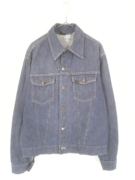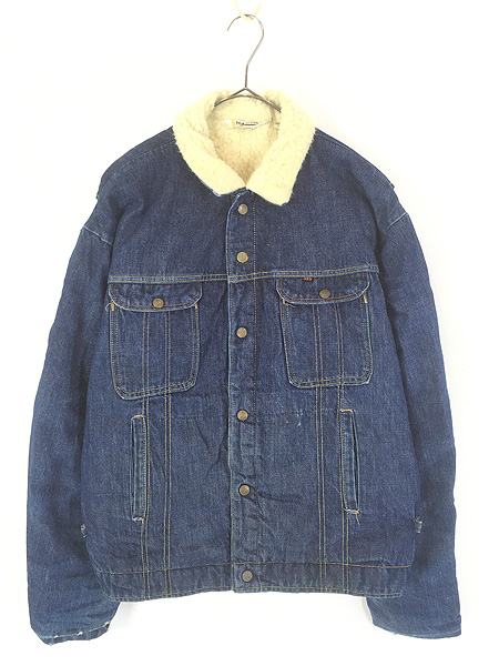 古着 70s KEY Imperial 混合ステッチ ハンド ポケット付 濃紺 デニム ボア トラッカー ジャケット Gジャン 48