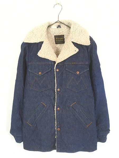 古着 70s USA製 Maverick 「Ranch Coat」 ブルー デニム ボア ランチ コート Gジャン M