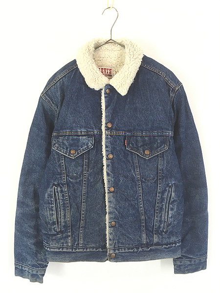 古着 80s USA製 Levi's 70608-0216 ハンド ポケット付 濃紺 デニム ボア トラッカー ジャケット Gジャン 42R