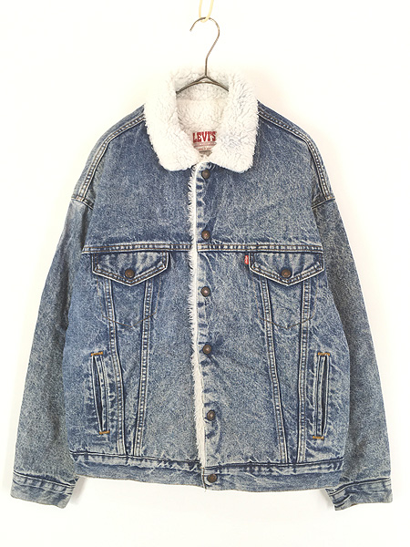 古着 80s USA製 Levi's 70609-0219 ケミカル ブルー デニム ボア トラッカー ジャケット Gジャン L