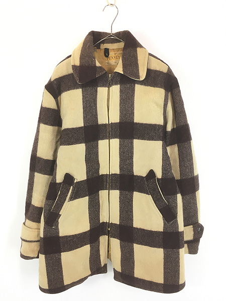 ¸ÅÃå 50s Penney's ¥Ö¥é¥¦¥ó ¥Ö¥í¥Ã¥¯ ¥Á¥§¥Ã¥¯ ¥Õ¥ë¥¸¥Ã¥× ¥Ø¥Ó¡¼ ¥¦¡¼¥ë ¥³¡¼¥È 40