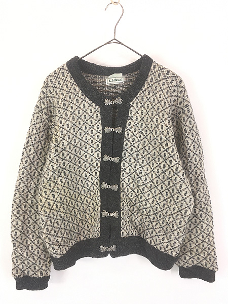 レディース 古着 80s Norway製 LL Bean ダイヤ チェック ハート ウール ニット カーディガン M