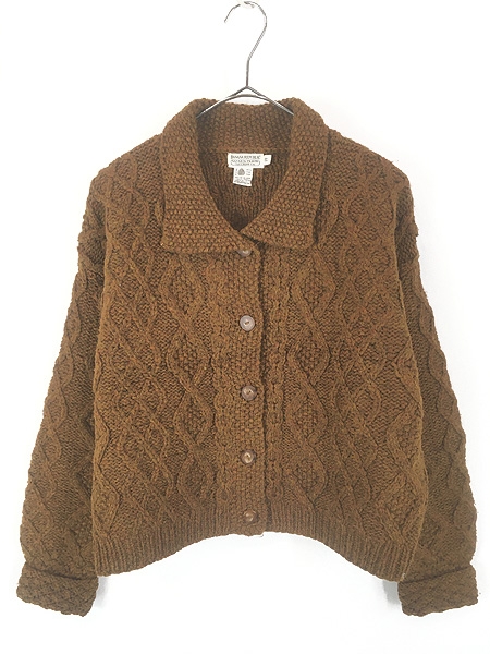 レディース 古着 80s BANANA REPUBLIC 「Safari&Travel」 アラン フィッシャーマン 襟付き ニット カーディガン S