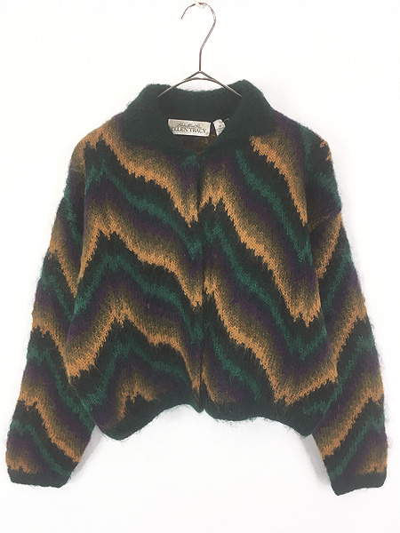 レディース 古着 90s ELLEN TRACY シェブロン モヘア ウール 襟付き ニット カーディガン ジャケット M