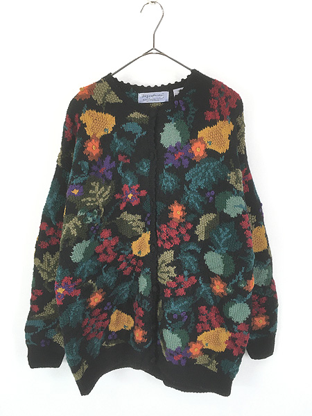レディース 古着 90s Signatures 花 フラワー 総柄 ウール ハンド ニット カーディガン L