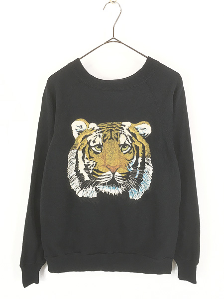 レディース 古着 90s USA製 Pannill 虎 タイガー アニマル ラメ プリント スウェット トレーナー M