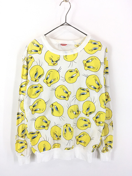 レディース 古着 90s LOONEY TUNES トゥイーティー 喜怒哀楽 フェイス 総柄 フランネル コットン トップス M位
