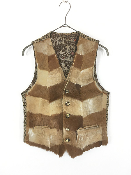レディース 古着 60-70s リアルファー × 幾何学模様 パッチワーク スーツ ベスト M位