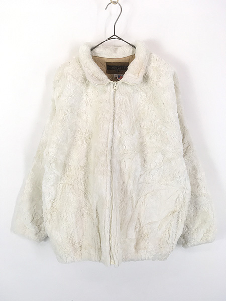 レディース 古着 90s USA製 Images In Fur by BEAR RIDGE 無地 ソリッド ホワイト フェイク ファー ジャケット S
