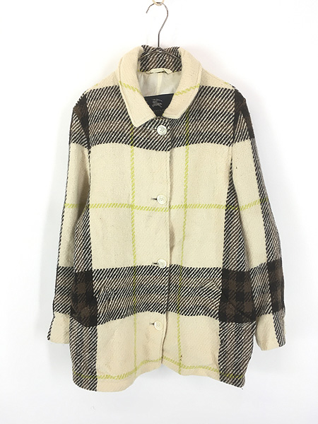 レディース 古着 USA製 Burberrys ホワイト チェック ウール ステンカラー コート XL