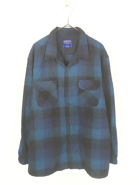 古着 00s Pendleton 「Board Shirt」 ブルー × ブラック チェック 開襟 ボックス ウール ボード シャツ XL