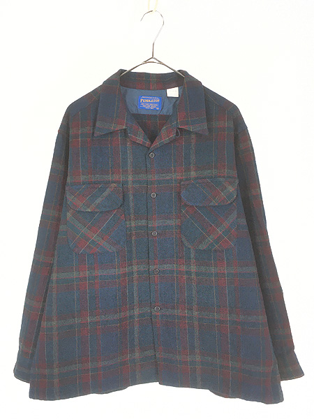 古着 60s Pendleton ベークライトボタン ダーク チェック 開襟 ボックス ウール ボード シャツ L