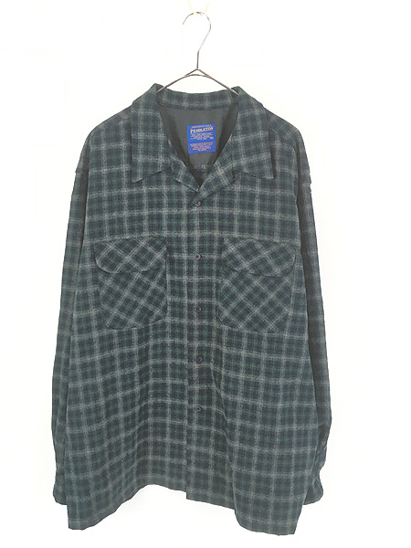 古着 90-00s Pendleton グリーン × ネイビー × グレー チェック 開襟 ボックス ウール ボード シャツ XL