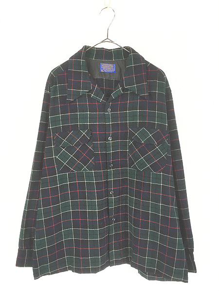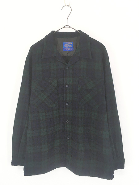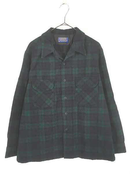 古着 60s Pendleton ブラックウォッチ チェック 開襟 ボックス ウール ボード シャツ M