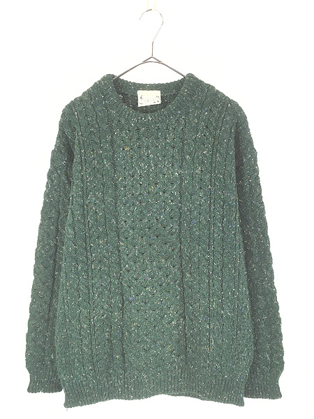 古着 80s Ireland製 Carraig Donn ネップ ローゲージ ウール アラン フィッシャーマン ニット セーター M