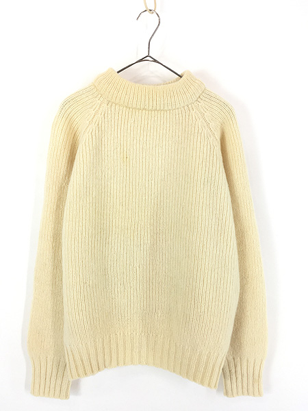 古着 70s 英国製 Peter Storm 雨降りタグ 畦編み ローゲージ ヘビー ウール ニット モックネック セーター XL
