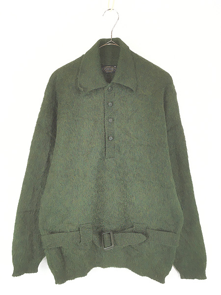 古着 70s USA製 PURITAN 貴重!! ベルト & 襟付 シャギー モヘア ウール ニット セーター M