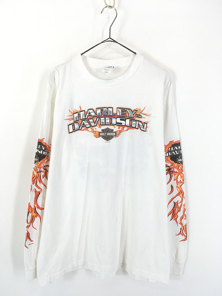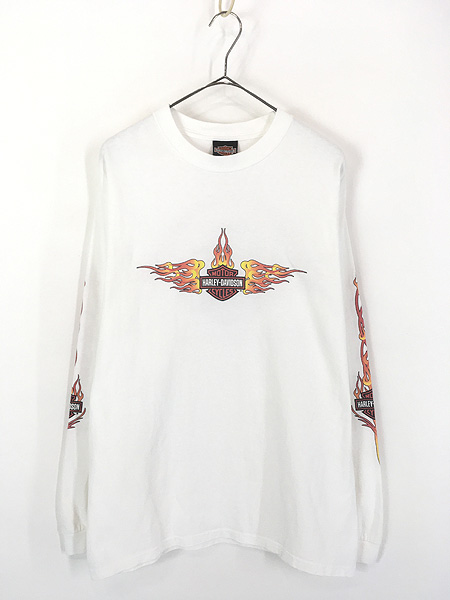 古着 00s USA製 HARLEY DAVIDSON ファイヤー バー&シールド 長袖 Tシャツ ロンT L