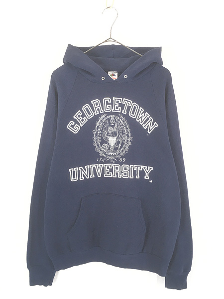 古着 90s USA製 「GEORGETOWN UNIVERSITY」 3段 カレッジ ラグラン スウェット パーカー L
