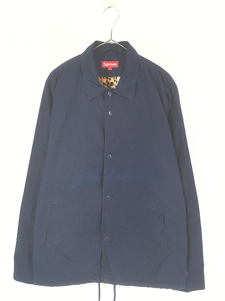 古着 10AW USA製 Supreme レオパード ライナー コットン コーチ ジャケット ネイビー L