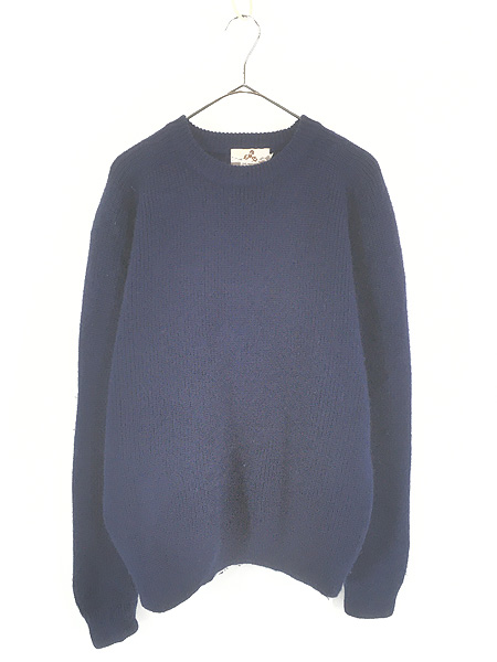 古着 80s EMS 無地 プレーン ラグラン 畦編み ウール ニット セーター ネイビー L