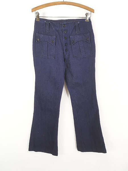 レディース 古着 70s GOLDEN HORSE パチポケ 濃紺 デニム ブーツカット パンツ ジーンズ W28 L29