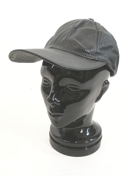 雑貨 古着 90s USA製 本革 ブラック レザー 6パネル キャップ 黒 帽子