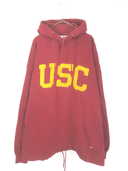 古着 90s USA製 Russell High Cotton 「USC」 スナップボタン ヘビー スウェット パーカー 裾ドローコード XL
