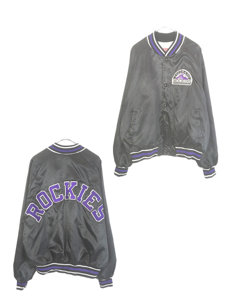 古着 90s USA製 MLB Colorado Rockies ロッキーズ 光沢 サテン スタジャン ジャケット XL
