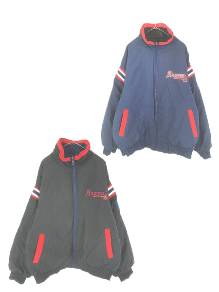 古着 PRO PLAYER MLB Atlanta Braves ブレーブス パデット リバーシブル ナイロン ジャケット XL