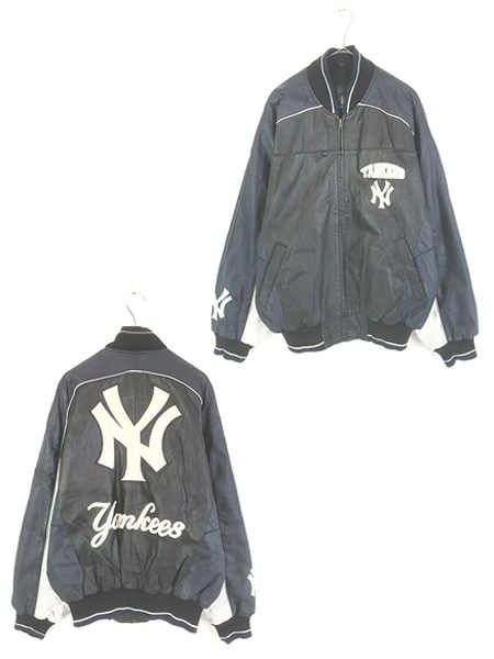 古着 LONDON FOG MLB NY Yankees ヤンキース 本革 オールレザー スタジアム ジャケット スタジャン S