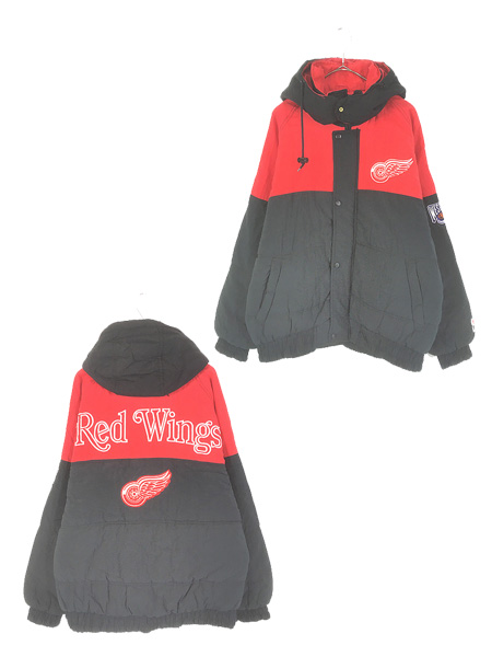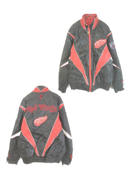 古着 PRO PLAYER NHL Detroit Red Wings レッドウィングス パデット 2way ナイロン ジャケット パーカー M