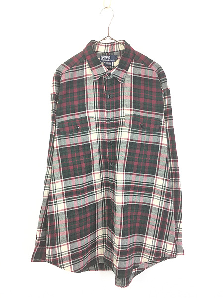古着 Polo Ralph Lauren 「WHITFIELD」 マルチ チェック ポケット付 フランネル シャツ ネルシャツ XL