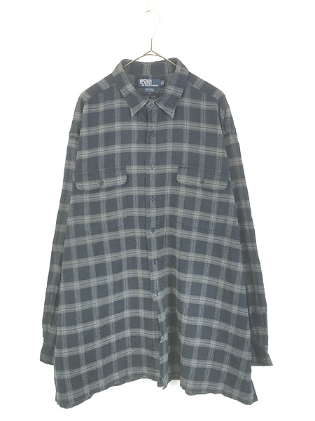 古着 Polo Ralph Lauren 「BENFORD」 ダーク チェック ポケット付 ボックス フランネル シャツ ネルシャツ XXL