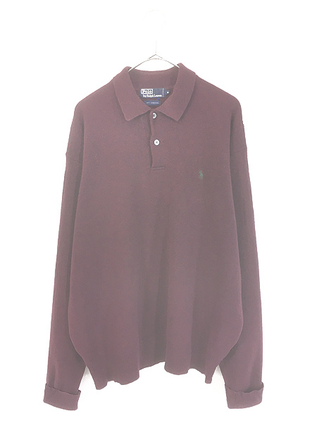 古着 90s Polo Ralph Lauren ワンポイント 襟付き ラムウール ニット セーター バーガンディー XL