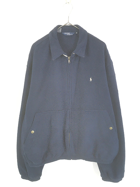 古着 90s USA製 Polo Ralph Lauren ワンポイント ソリッド フリース スウィング トップ ジャケット ネイビー XL