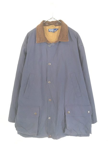 古着 90s USA製 Polo Ralph Lauren オイルド ワックス ジャケット コート ネイビー L