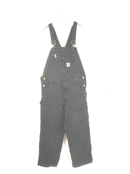古着 10s Carhartt 防寒 パデット BLK ブラック ダック Wニー ワーク オーバーオール W36 L29