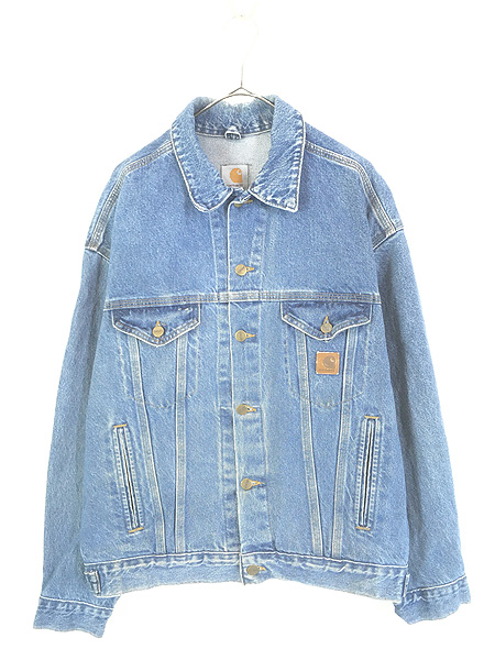 古着 Carhartt ワンポイント パッチ デニム トラッカー ジャケット Gジャン L位
