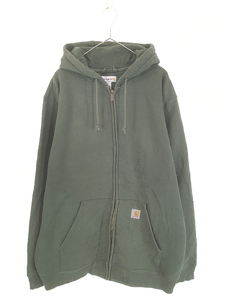 古着 Carhartt ワンポイント 刺しゅう スウェット ジップ パーカー DGR ダークグリーン XL