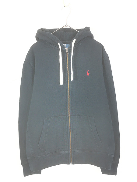 古着 Polo Ralph Lauren フード裏 サーマル ワンポイント ソリッド スウェット ジップ パーカー ネイビー L