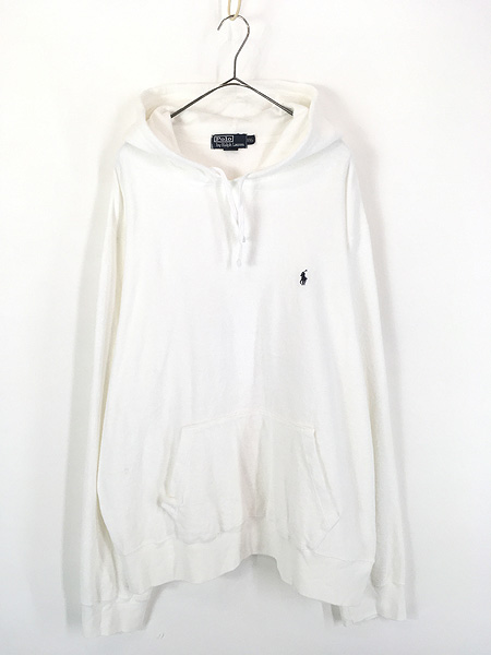 古着 Polo Ralph Lauren ワンポイント 前V パイル コットン スウェット パーカー ホワイト XXL