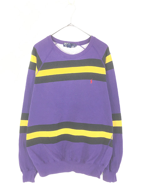 古着 90s Polo Ralph Lauren パープル×ブラック×イエロー ボーダー スウェット トレーナー M