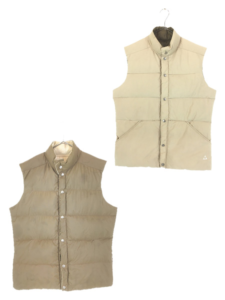 古着 80s USA製 GERRY カーキ×ブラウン リバーシブル 軽量 ダウン ベスト L