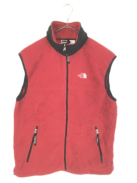 古着 90s TNF The NorthFace ロゴ 刺しゅう レッド×ブラック フリース ベスト M