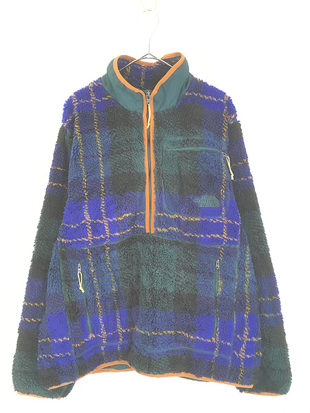 古着 TNF The North Face マルチ チェック ハイネック ハーフジップ パイル ボア フリース ジャケット L 美品!!