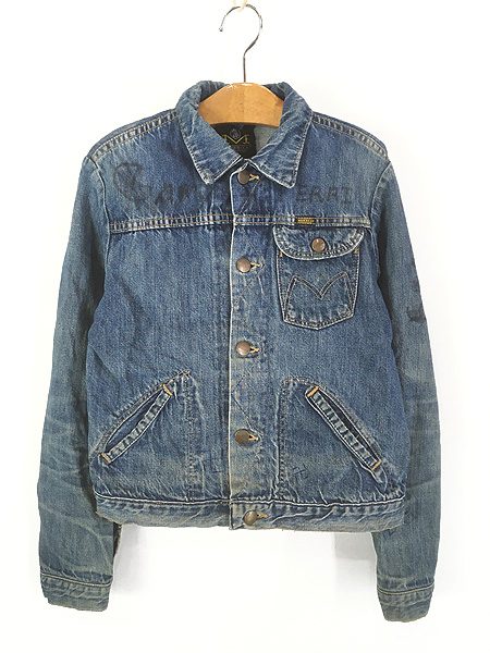 キッズ 古着 60s USA製 BLUE BELL MAVERICK 斜めベル ミミ付 インディゴ デニム トラッカー ジャケット Gジャン 16 12歳以上位