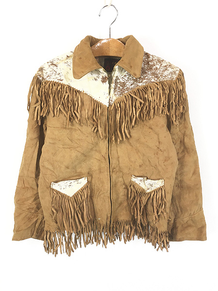 キッズ 古着 50s K-BAR-Z ハラコ 切替 本革 スエード レザー フリンジ ウエスタン ジャケット 12歳位