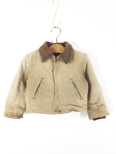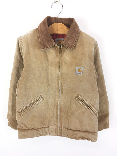 キッズ 古着 80s- Carhartt レッド キルティング ライナー ブラウン ダック デトロイト ジャケット ポケットなし 4歳位