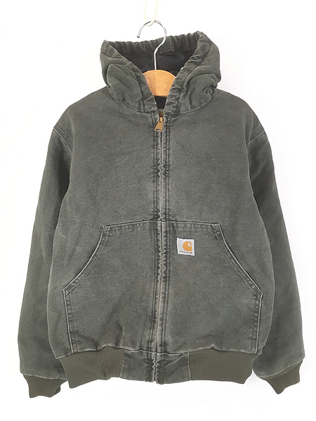 キッズ 古着 00s Carhartt 防寒 裏地 キルティング MOS モスグリーン ダック ワーク アクティブ パーカー M 8歳位